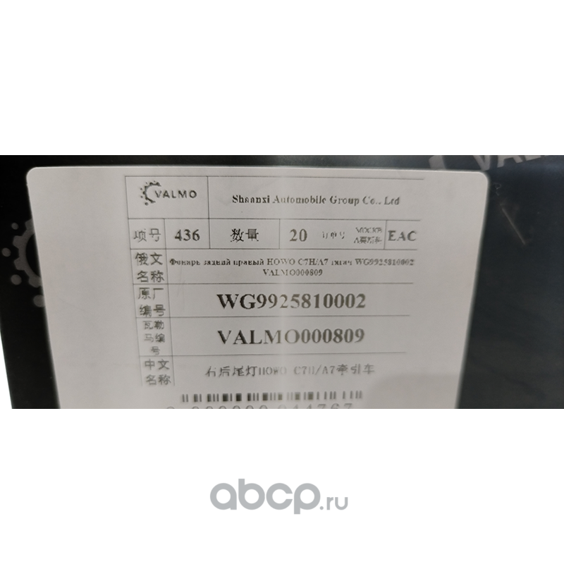 VALMO VALMO000809 Фонарь задний правый