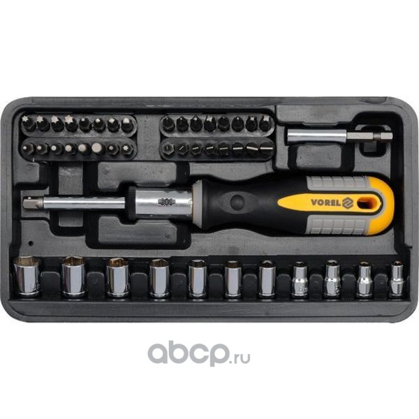 | VOREL | 64657 | Отвертка трещеточная, с битами и головками, 46 пр | ||