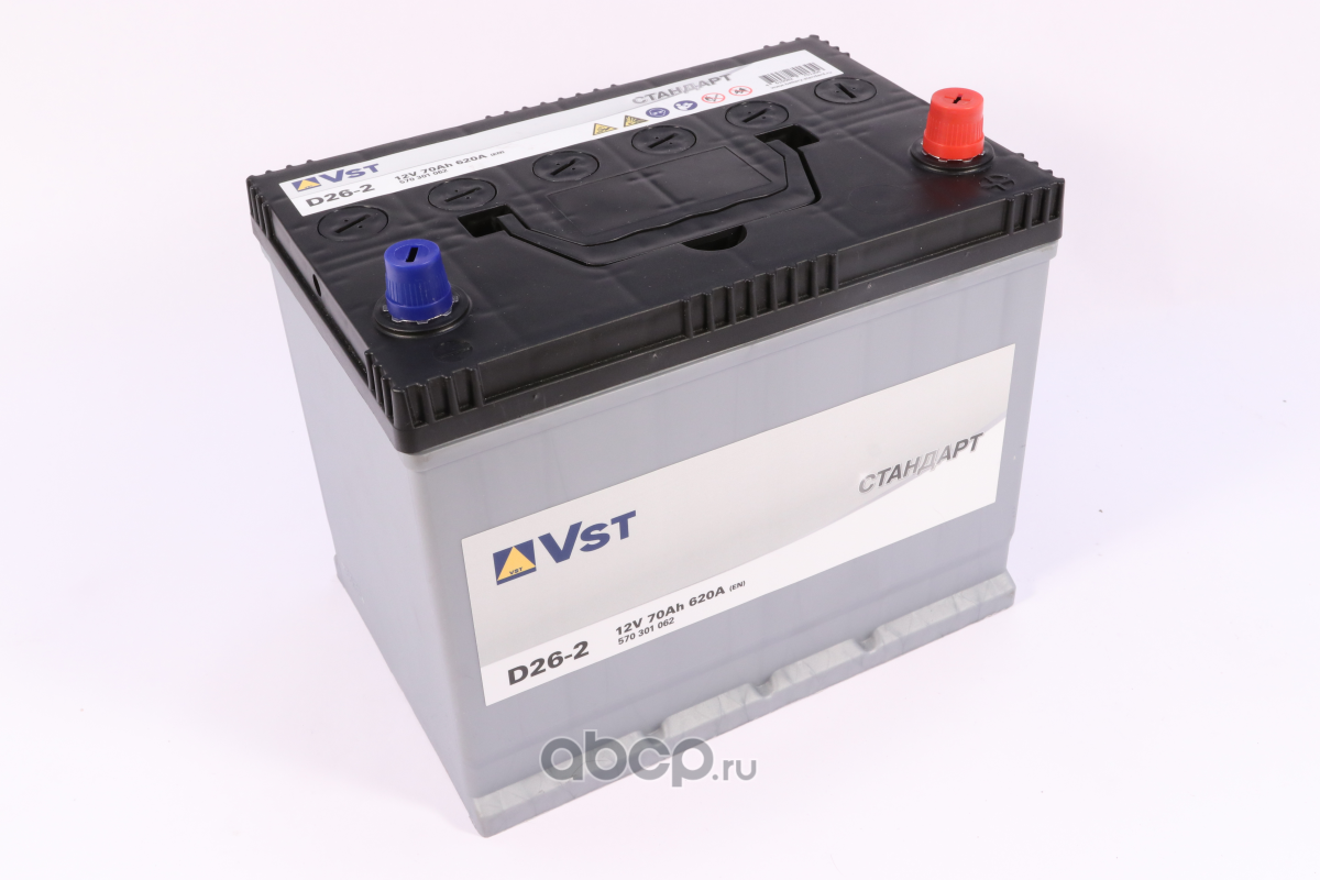 | VST | 570301062 | Батарея аккумуляторная 70А/ч 620А 12В обратная полярн. выносные (Азия) клеммы | ||