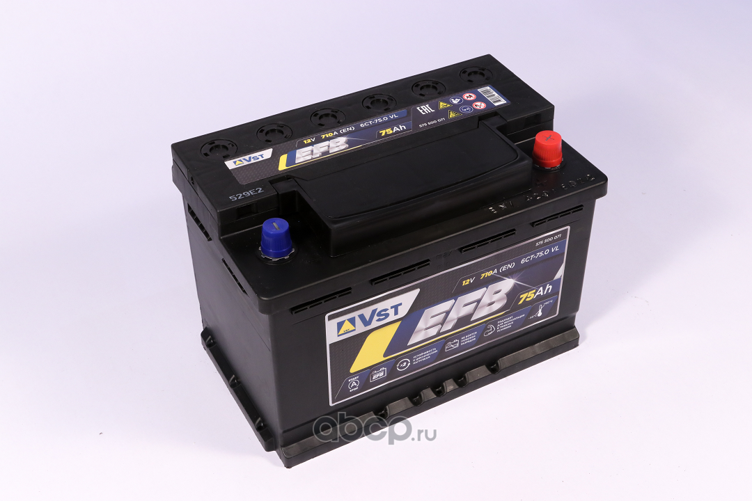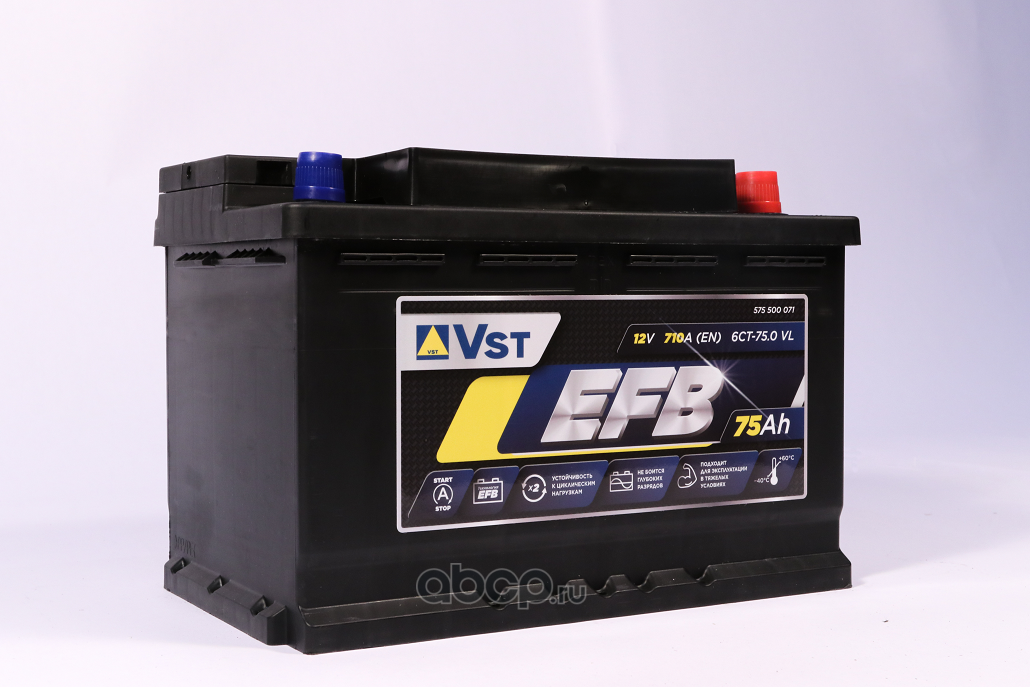 | VST | 575500071 | Батарея аккумуляторная 75А/ч 710А 12В обратная полярн. стандартные (Европа) клеммы | ||