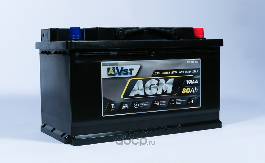 | VST | 580900080 | Батарея аккумуляторная 80А/ч 800А 12В обратная полярн. стандартные (Европа) клеммы | ||