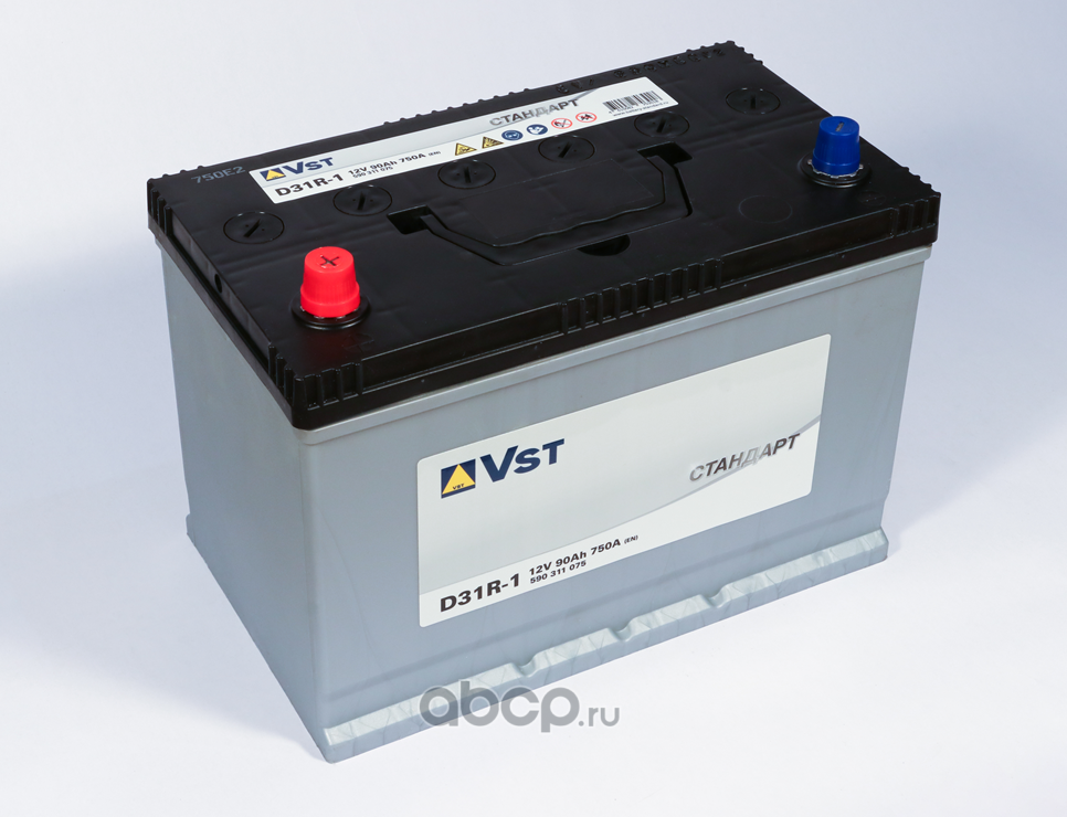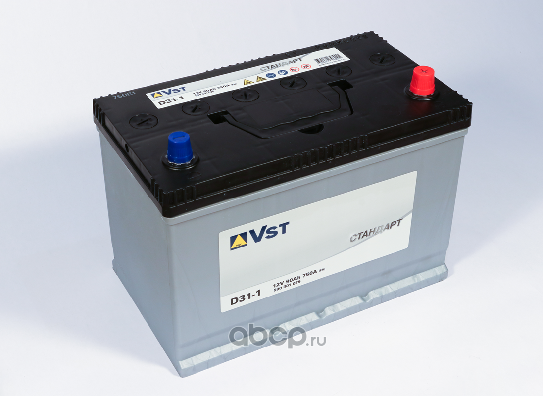 | VST | 590311075 | Батарея аккумуляторная 90А/ч 750А 12В прямая полярн. выносные (Азия) клеммы | ||