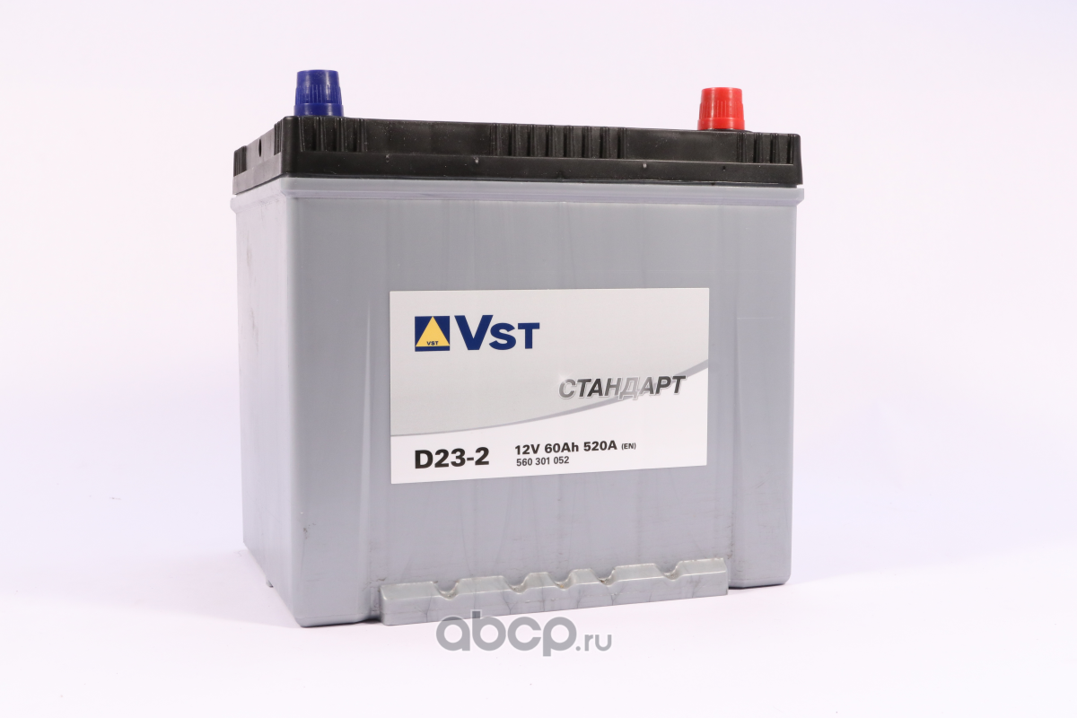 | VST | 560301052 | Батарея аккумуляторная 60А/ч 520А 12В обратная полярн. выносные (Азия) клеммы | ||