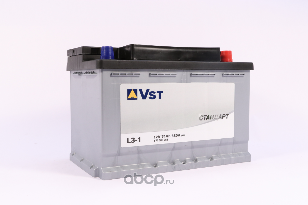 | VST | 574300068 | Батарея аккумуляторная 74А/ч 680А 12В обратная полярн. стандартные (Европа) клеммы | ||