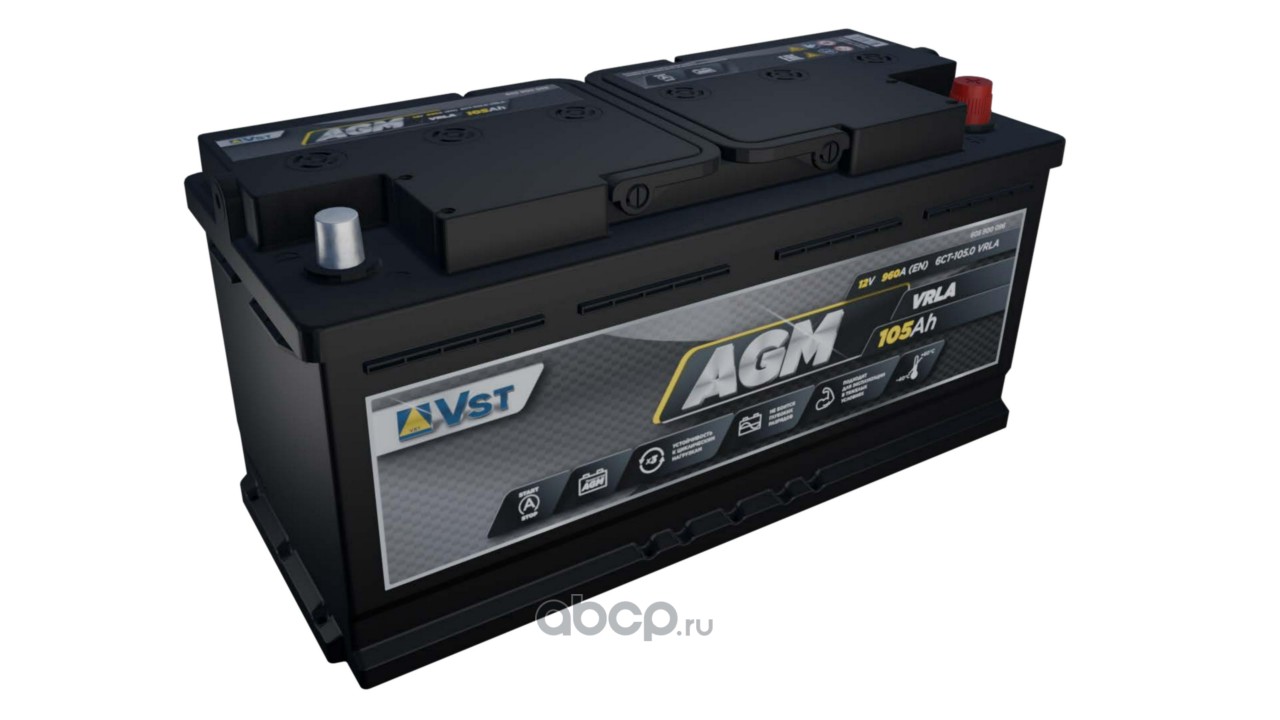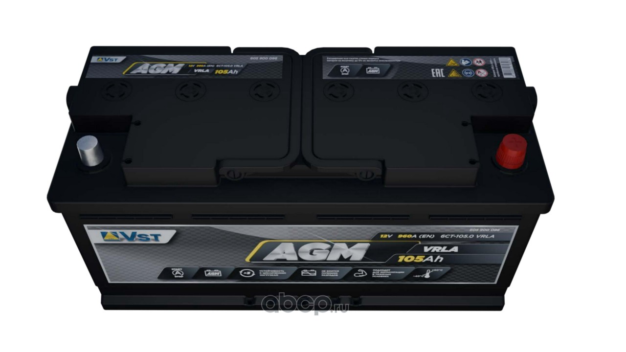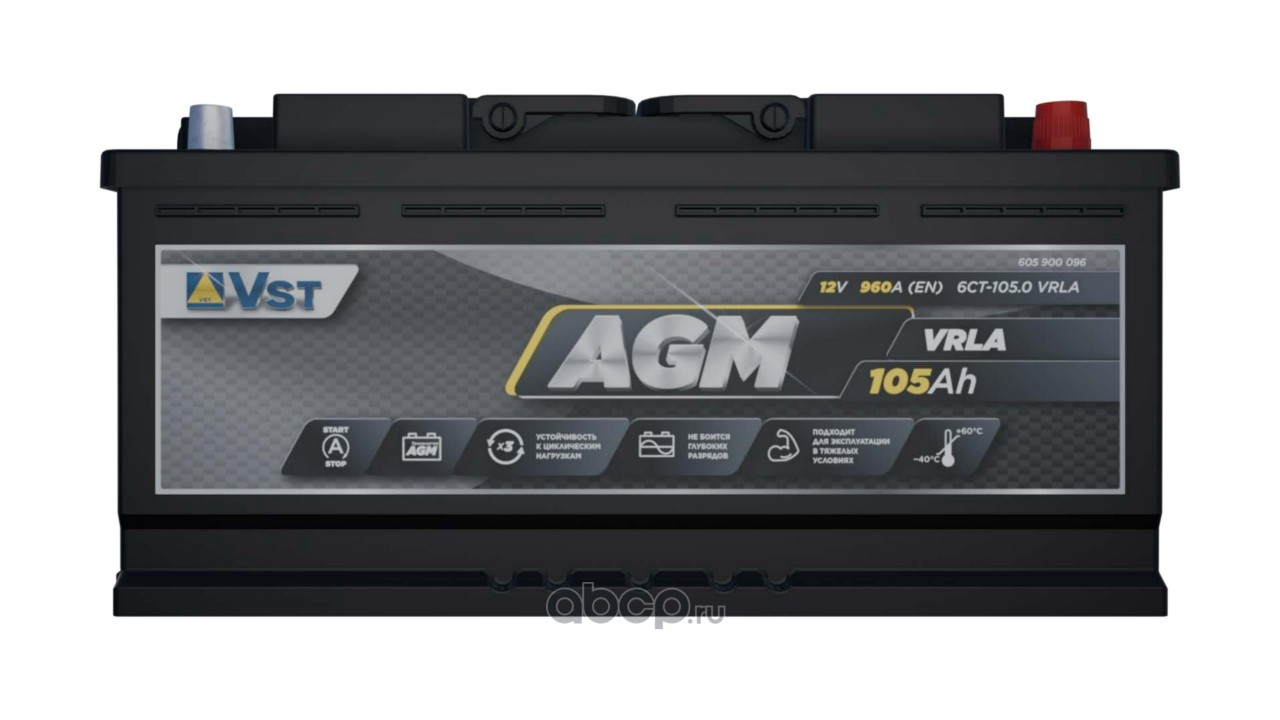 | VST | 605900096 | Батарея аккумуляторная 105А/ч 960А 12В обратная полярн. стандартные (Европа) клеммы | ||