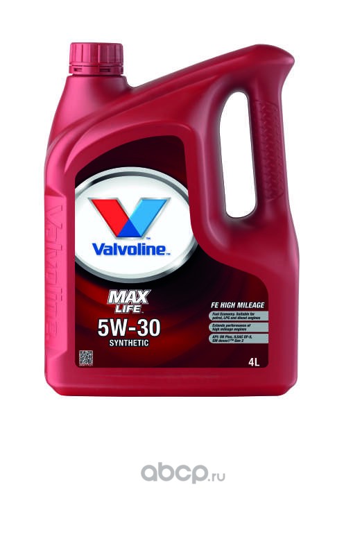 | Valvoline | 893617 | Масло моторное синтетика Valvoline MAXLIFE FE 5W-30 4 л. | ||