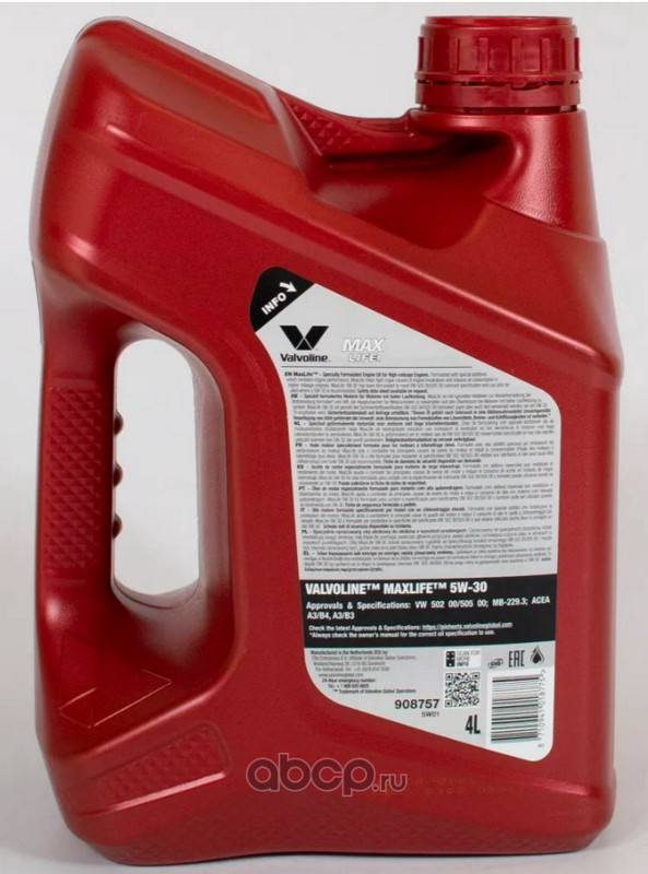 | Valvoline | 908757 | MAXLIFE 5W30 4/4 L NSW | ||