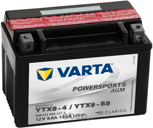 | Varta | 508012008 | Батарея аккумуляторная 8А/ч 135А обратная полярн. стандартные (Европа) клеммы | ||
