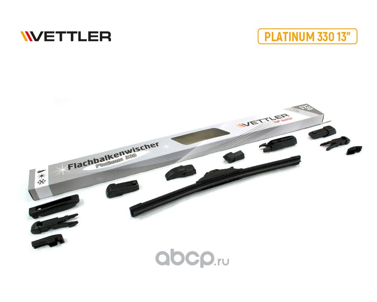 | Vettler | VEPLATINUM330 | Бескаркасная щетка стеклоочистителя 13" 330 9 переходников PLATINUM VETTLER | ||
