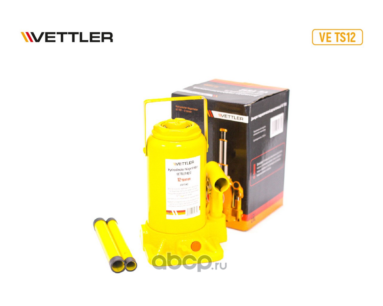 | Vettler | VETS12 | Домкрат гидравлич (12т) бутылочный двуштоковый (210x490) VETTLER | ||