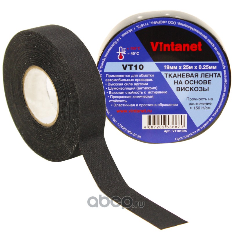 | Vintanet | VT101925 | Лента тканевая на основе вискозы VT10 19мм х 25м | ||