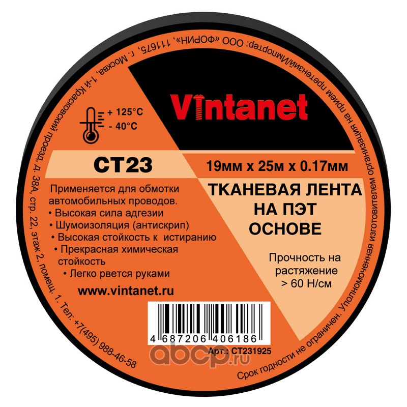 | Vintanet | CT231925 | Лента тканевая на ПЭТ основе CT23 19мм х 25м | ||