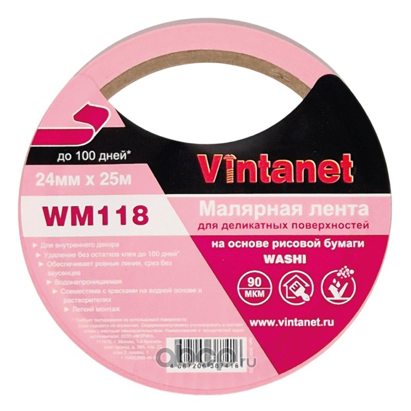 | Vintanet | WM1182425 | Лента малярная для деликатных поверхностей WM118 24мм х 25м | ||