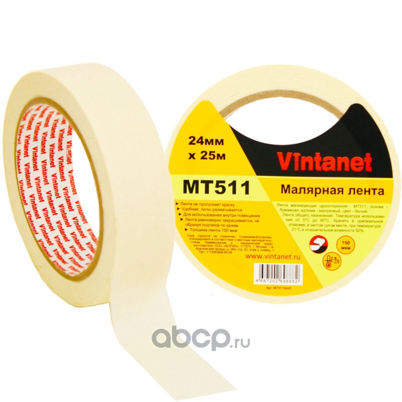 | Vintanet | MT5112425 | Лента малярная 80°С 150мкм MT511 24мм х 25м | ||