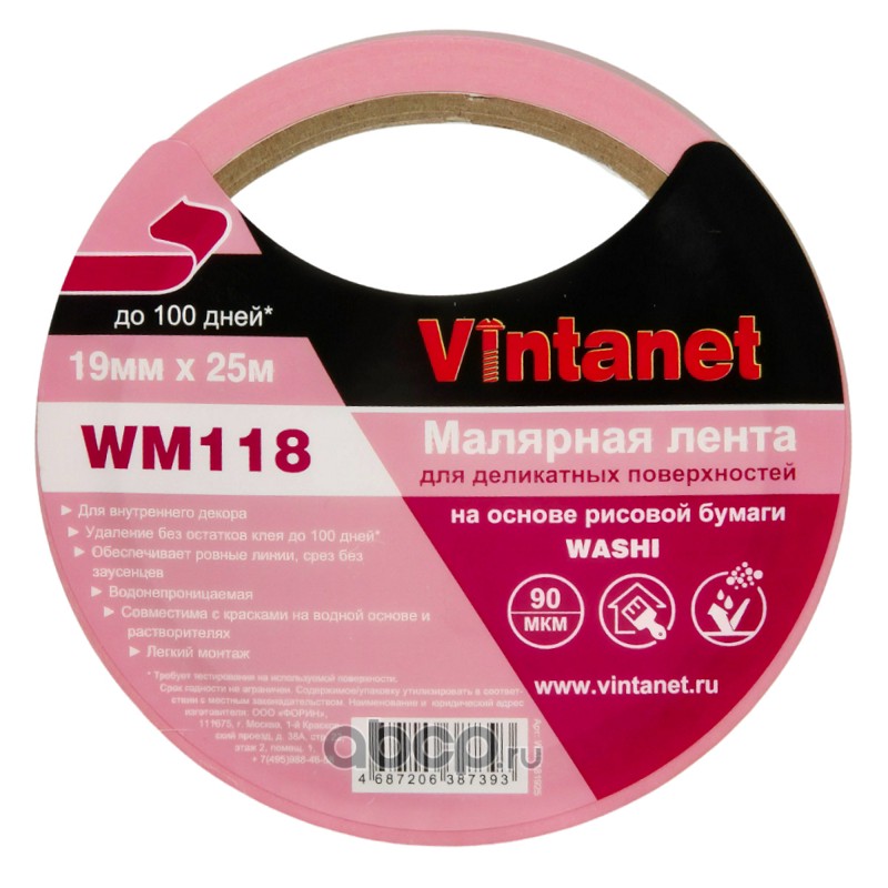 | Vintanet | WM1181925 | Лента малярная для деликатных поверхностей WM118 19мм х 25м | ||