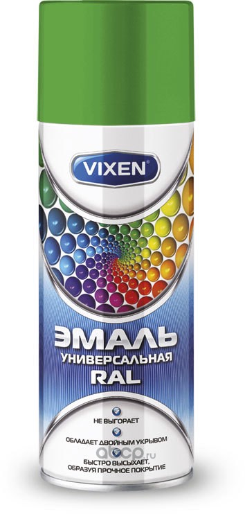 | Vixen | VX16018 | Эмаль универсальная RAL, светло-зеленый (RAL 6018), аэрозоль 520 мл | ||