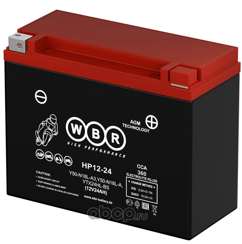 | WBR | HP1224 | Батарея аккумуляторная 24А/ч обратная полярн. болтовые мото клеммы | ||