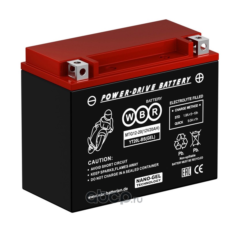 | WBR | MTG1220 | Батарея аккумуляторная 20А/ч обратная полярн. болтовые мото клеммы | ||