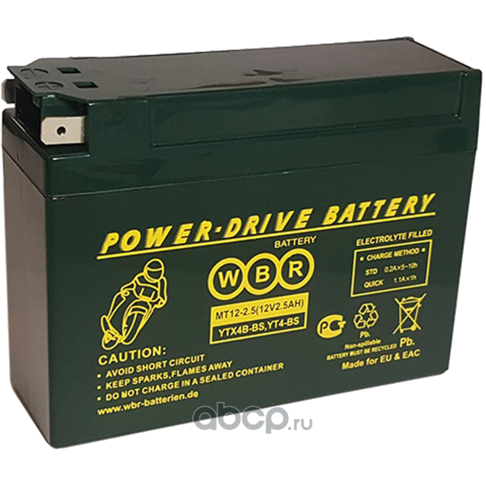 | WBR | MT1225 | Батарея аккумуляторная 12В 2.5А/ч 40А боковые клеммы | ||