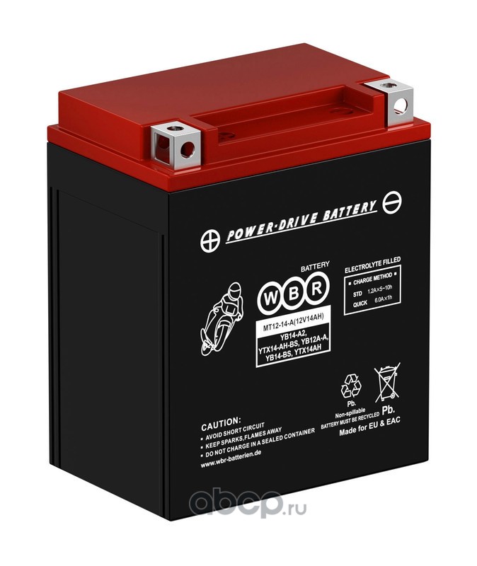 WBR | MT1214B | Батарея аккумуляторная 14А/ч 210А прямая полярн. болтовые мото клеммы | |