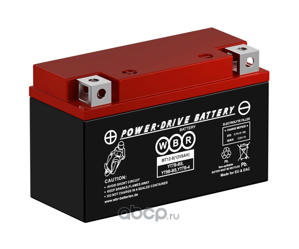 | WBR | MT128 | Батарея аккумуляторная 8А/ч 100А прямая полярн. болтовые мото клеммы | ||