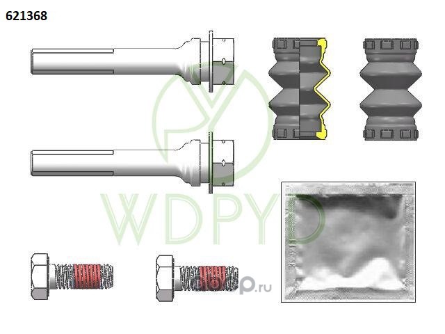| WDPYD | 621368 | Комплект направляющих пальцев, втулок, болтов и пыльников тормозного суппорта | ||
