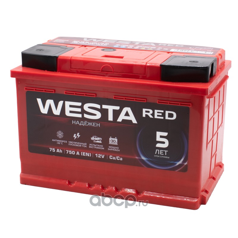 | WESTA RED | 6СТ75L | Батарея аккумуляторная 75А/ч 750А обратная полярн. стандартные (Европа) клеммы | ||