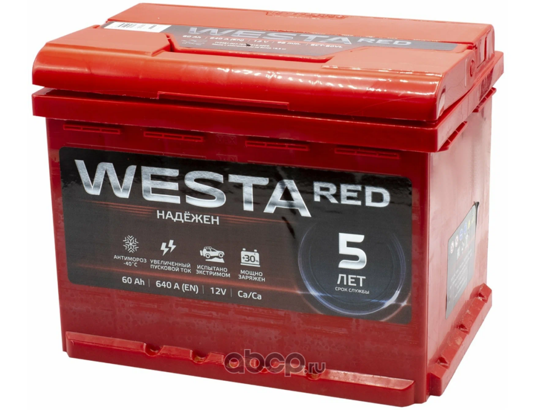 WESTA RED | 6СТ60 | Батарея аккумуляторная 60А/ч 640А прямая полярн. стандартные (Европа) клеммы | |