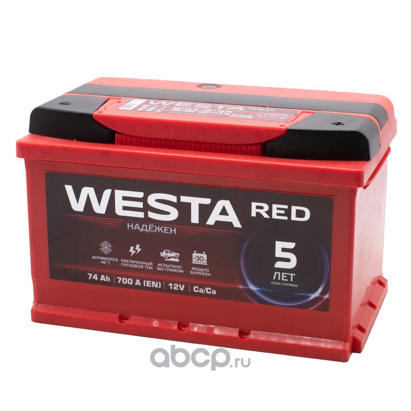| WESTA RED | 6СТ74L | Батарея аккумуляторная 74А/ч 700А обратная полярн. стандартные (Европа) клеммы | ||
