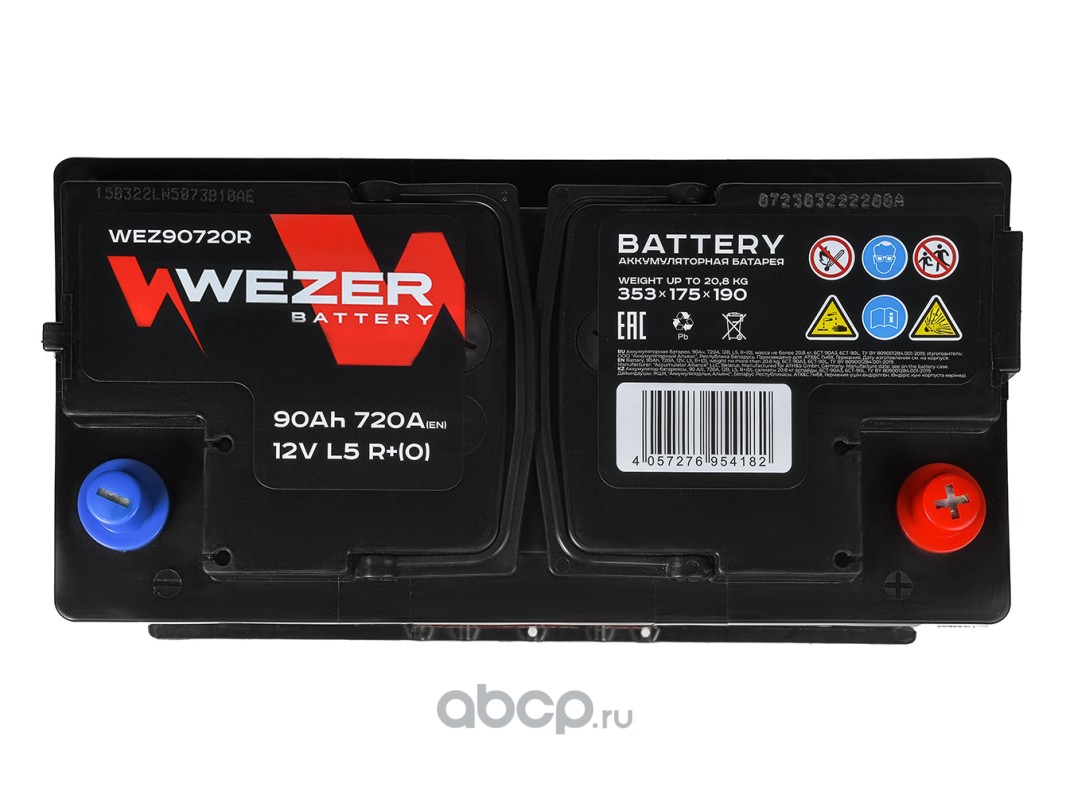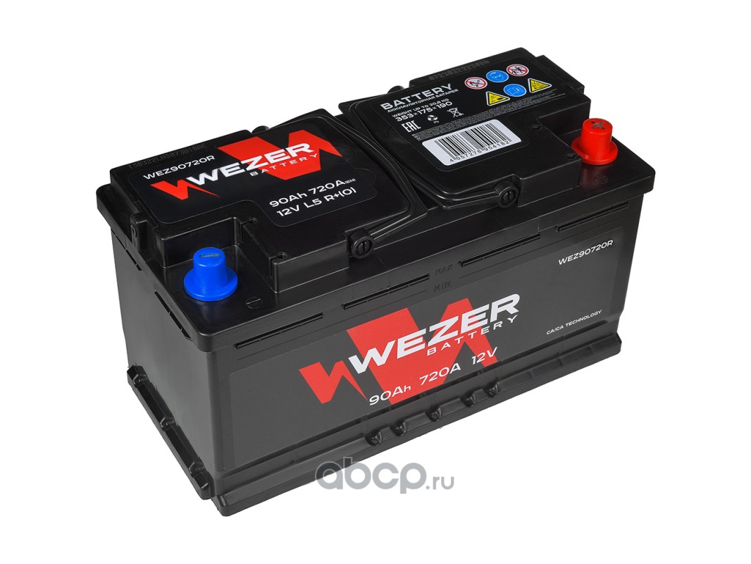 | WEZER | WEZ90720R | Батарея аккумуляторная 90А/ч 720А 12В обратная полярн. стандартные клеммы | ||