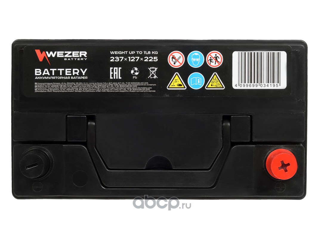 | WEZER | WEZ45330R | Батарея аккумуляторная 45А/ч 330А 12В обратная полярн. выносные (Азия) клеммы | ||