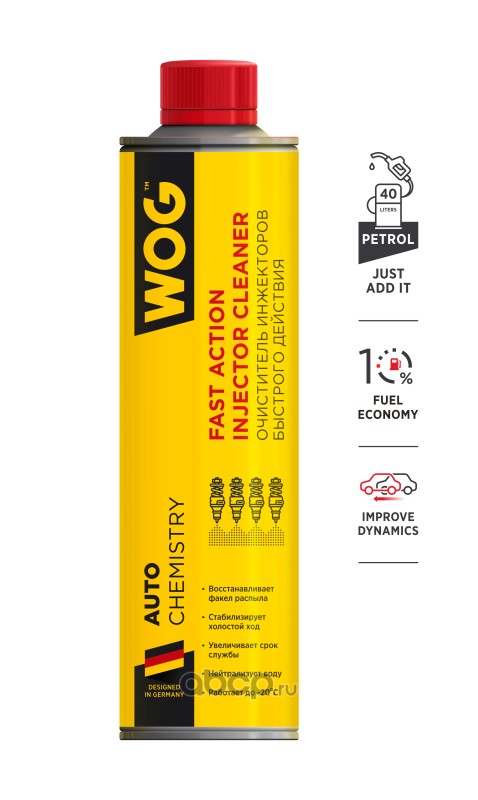 Очиститель инжекторов присадка направленного действия в бензин (на 40-50 л) с насадкой WOG, 400 мл