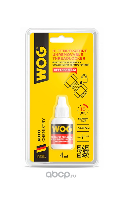 Анаэробный герметик-фиксатор резьбовых соединений "Неразборный" термостойкий (красный) WOG, 4 мл