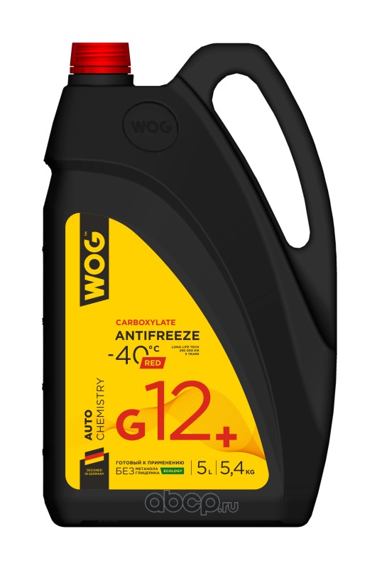 Охлаждающая жидкость Антифриз (красный) G12+ (-40C) карбоксилатный WOG, 5 л/5,4 кг