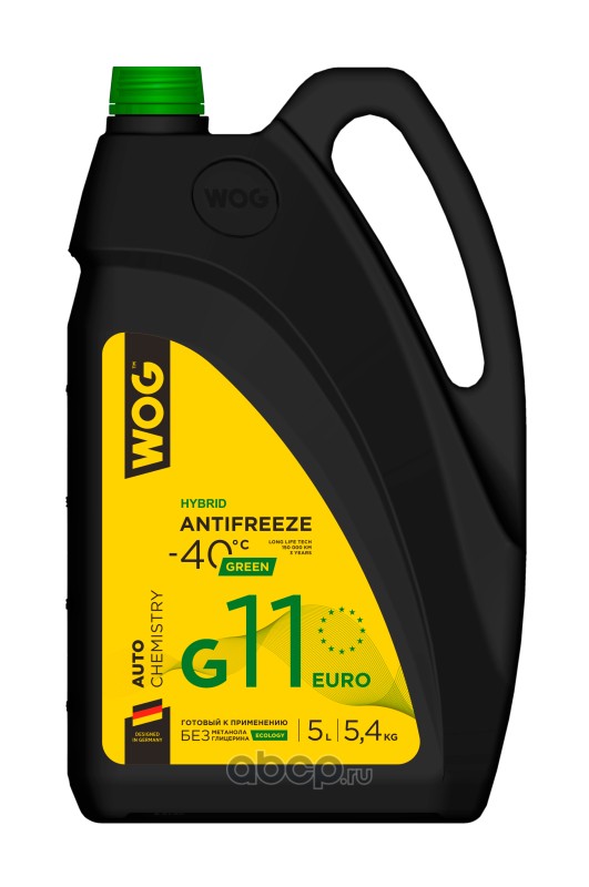 | WOG | WGC0101 | Охлаждающая жидкость Антифриз (зелёный) G11 (-40C) гибридный WOG, 5 л/5,4 кг | ||