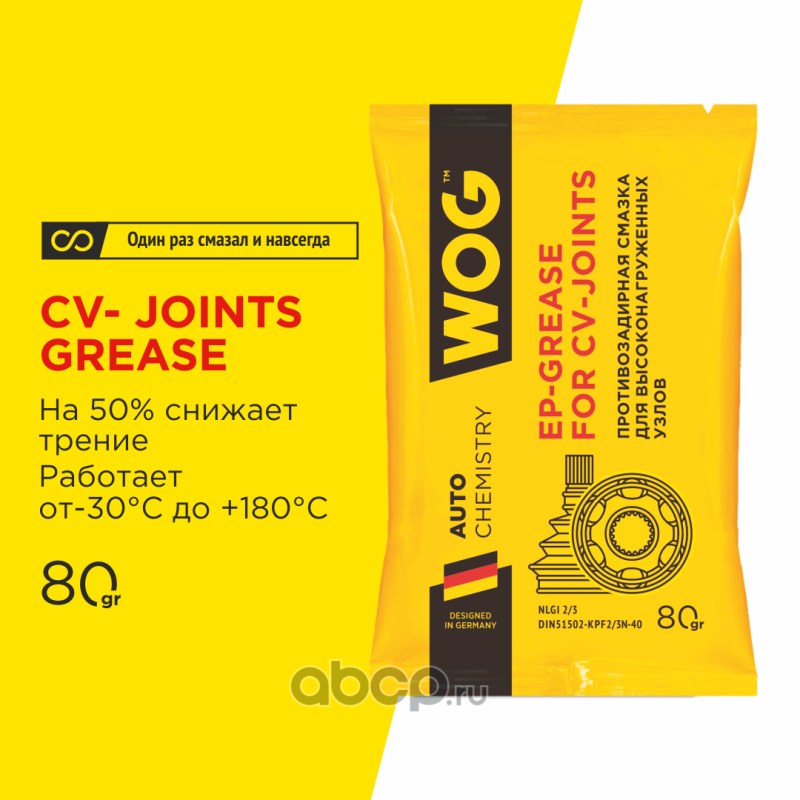 | WOG | WGС0600 | Противозадирная металлоплакирующая комплексная литиевая смазка для высоконагруженных узлов (ШРУС) WOG, 80 гр | ||
