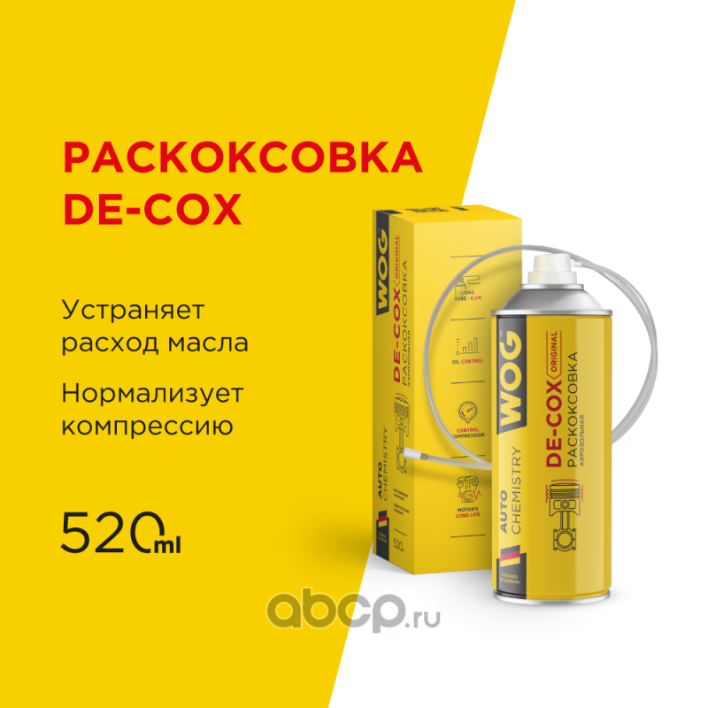 Раскоксовка двигателя De-COX Original для восстановления компрессии и устранения угара масла для всех типов ДВС (аэрозоль) WOG , 520 мл