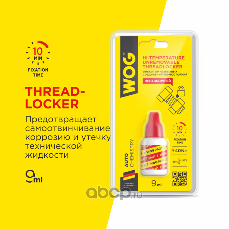 Анаэробный герметик-фиксатор резьбовых соединений "Неразборный" термостойкий (красный) WOG, 9 мл