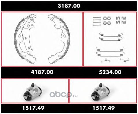 | WOKING | 318700 | Комплект тормозов, барабанный тормозной механизм | ||
