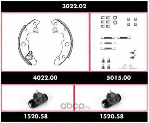 | WOKING | 302202 | Комплект тормозов, барабанный тормозной механизм | ||