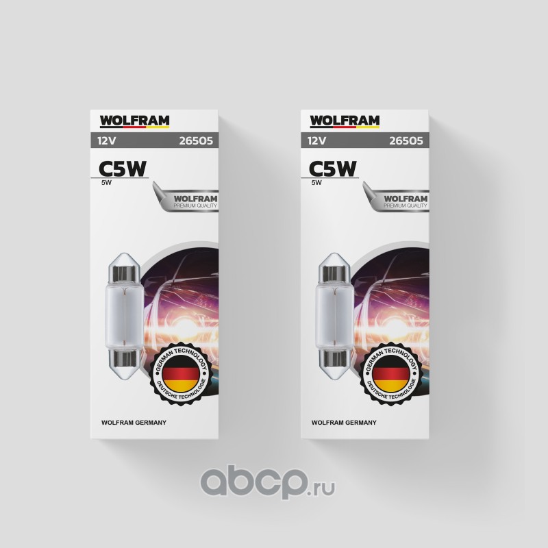 | WOLFRAM | 26505 | Лампа галогенная WOLFRAM FESTOON BULB C5W SV8.5-8 12V 5W 1 шт. | ||