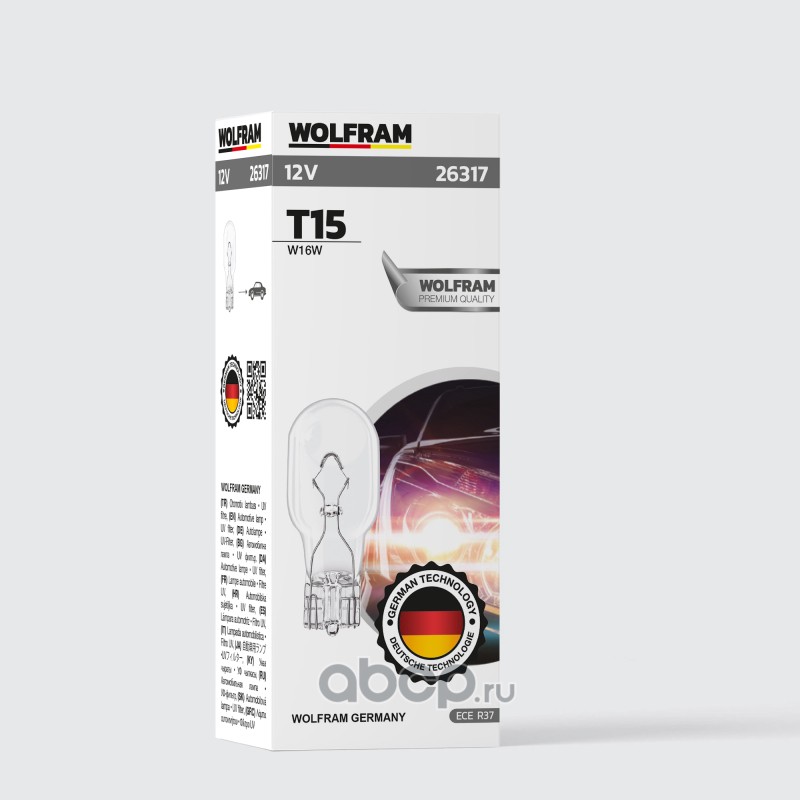 | WOLFRAM | 26317 | Лампа галогенная WOLFRAM WITHOUT SOCKET T15 W2.1x9.5d 12V 16W 1 шт. | ||
