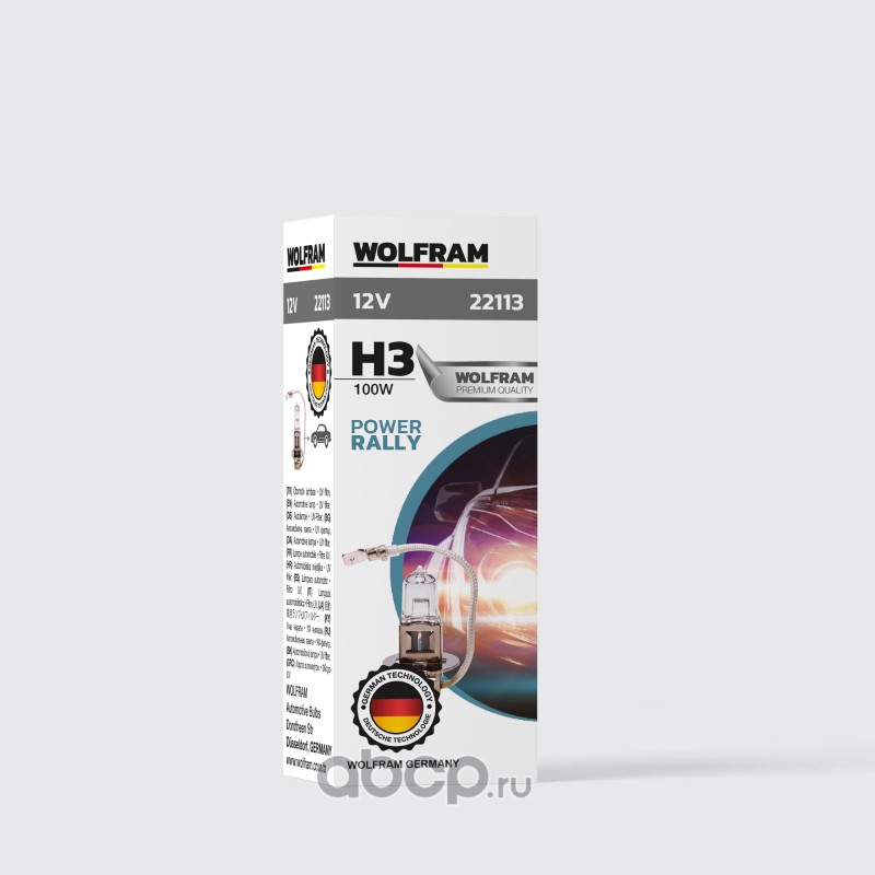 | WOLFRAM | 22113 | Лампа галогенная WOLFRAM HALOGEN BULB H3 PK22s 12V 100W 1 шт. | ||