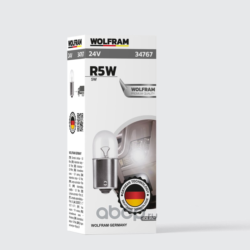 | WOLFRAM | 34767 | Лампа галогенная WOLFRAM R5W BA15s 24V 5W 1 шт. | ||