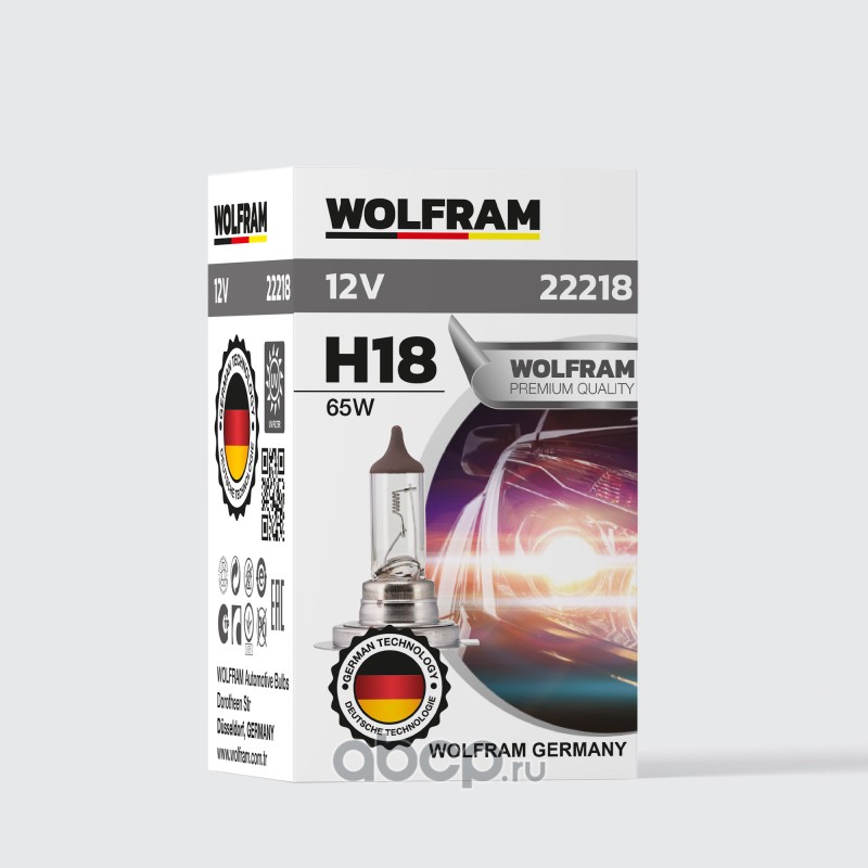 | WOLFRAM | 22218 | Лампа галогенная WOLFRAM HALOGEN BULB H18 PY26D-1 12V 65W 1 шт. |