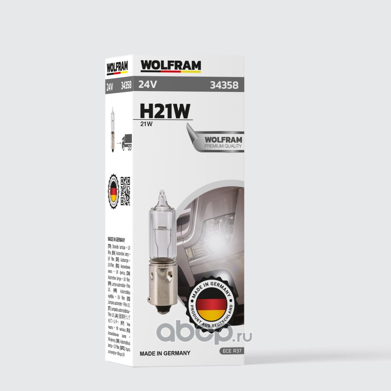 | WOLFRAM | 34358 | Лампа галогенная WOLFRAM LENS BULB H21W BAY9s 24V 21W 1 шт. | ||
