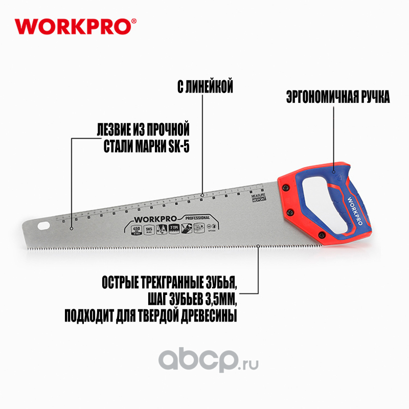 | WORKPRO | WP215006 | Ножовка по дереву SK5 450мм 7TPI | ||