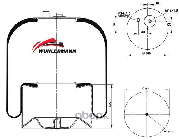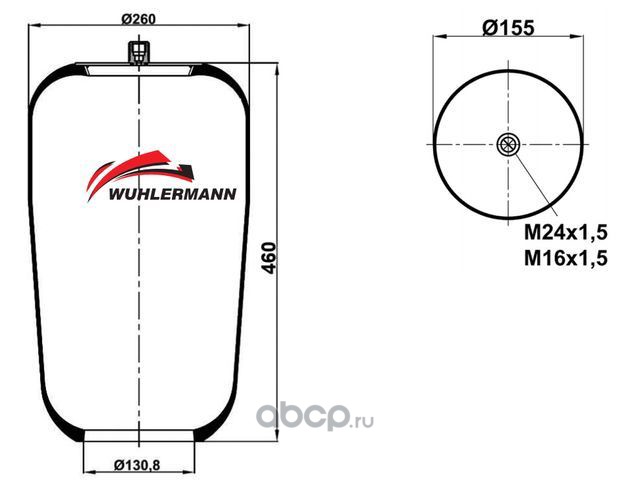 Пневморессора в сборе (метал.стакан) 4183 N P04 (1отв. М16 1шп-шт.М24x1,5 смещ.40 (Voss 230)) MB Actros I/II, Atego I