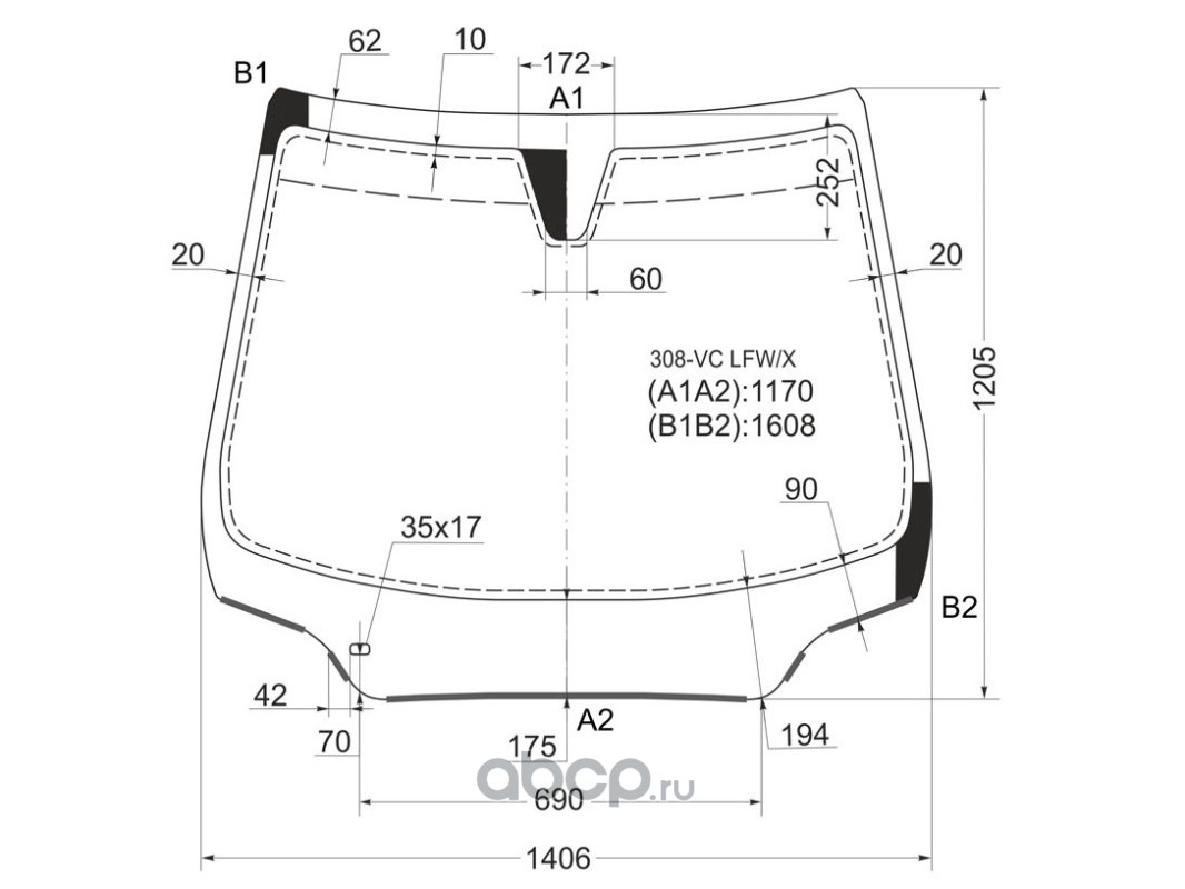 | XYG | 308VCLFWX | Стекло лобовое в клей PEUGEOT 308 3D/5D HBK 07- | ||