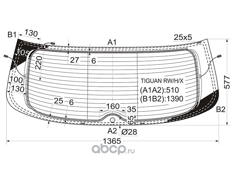 | XYG | TIGUANRWHX | Стекло заднее (крышка багажника) с обогревом VOLKSWAGEN TIGUAN 2007- |